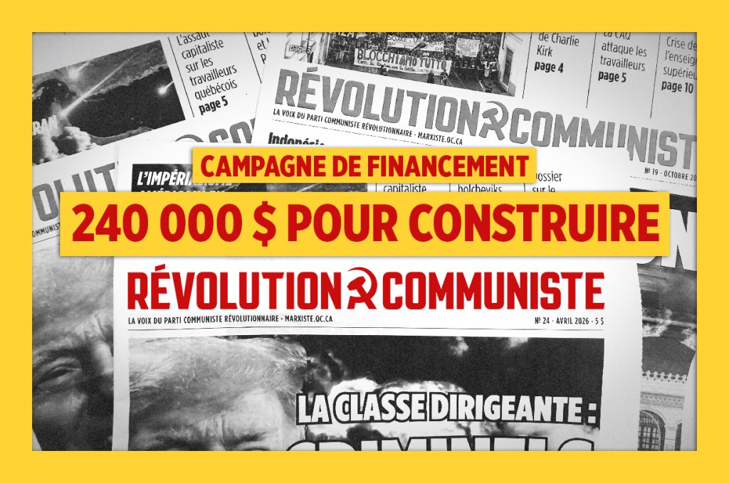 Cette campagne de financement vise à renforcer les fondations du parti qui mènera la révolution au Canada – et à l’international. Si vous nous soutenez dans cet objectif, financez le Parti communiste révolutionnaire aujourd’hui.