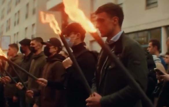 Capture d’écran d’une vidéo de la marche en hommage à Quentin Deranque. De nombreux saluts nazis ont été été vus lors de la marche. / X
