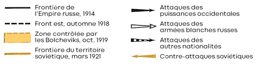 Pendant de longues années, le premier Etat ouvrier de l’histoire (abstraction faite de la Commune de Paris, en 1871) est soumis à un déferlement d’attaques dirigées par des généraux contre-révolutionnaires (les « Blancs ») et des nationalistes bourgeois. Tous veulent renverser le gouvernement de Lénine, et tous reçoivent l’aide des puissances impérialistes.