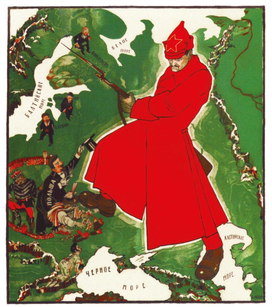 En même temps que la guerre civile éclate, l’empire russe se disloque. Le gouvernement soviétique reconnaît immédiatement les droits des minorités nationales, ainsi que l’indépendance de la Pologne, de la Finlande et de toute une série de nations jusqu’alors opprimées dans la « prison des peuples » qu’était la Russie impériale, selon la formule de Lénine. La politique des bolcheviks s’explique simplement : il s’agit de montrer que le nouveau régime soviétique ne poursuivra pas la politique d’oppression tsariste, qu’il prône au contraire la solidarité des travailleurs de toutes les nationalités.