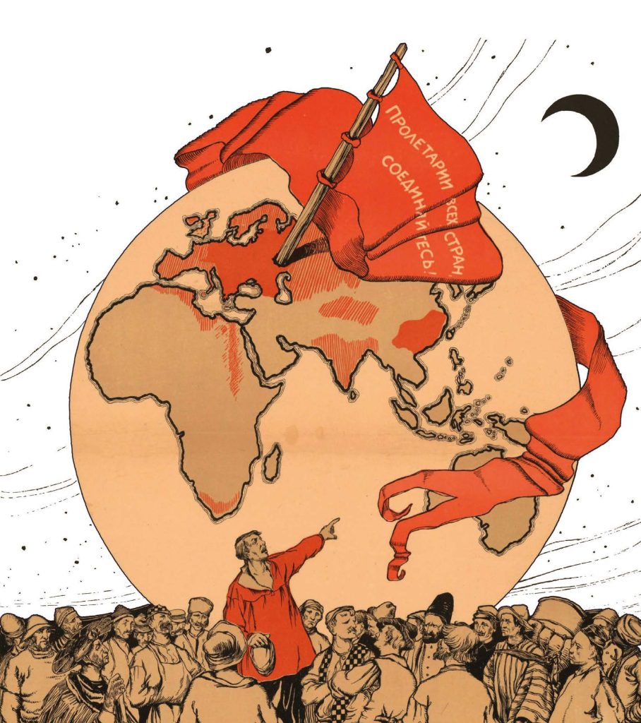 Tout cela montre que la révolution d’Octobre et la guerre civile ne sont pas des affaires russes, mais des événements d’ampleur internationale. De fait, la Révolution russe est perçue, à l’époque, comme la première étape de la révolution socialiste mondiale. Comme le souligne Lénine dans sa « Lettre aux ouvriers américains », pour des millions d’ouvriers et de paysans à travers le monde, le programme socialiste des bolcheviks semble une bonne réponse à leurs propres problèmes, à la guerre, à la misère et à l’exploitation. Comme l’expliquait déjà Marx dans Le Manifeste du Parti Communiste, « les travailleurs n’ont pas de patrie ». Ils ont les mêmes intérêts et forment donc une seule classe internationale. Cette idée est toujours d’une actualité brûlante. L’émancipation des travailleurs passera par leur unité internationale, par-delà les frontières. Et si la solidarité internationale est un réflexe spontané en période révolutionnaire, elle doit être organisée pour être victorieuse. C’est ce que les bolcheviks ont bien compris : immédiatement après la révolution d’Octobre, ils se sont attelés à la construction d’une IIIe Internationale, dont le premier congrès s’est tenu à Moscou en mars 1919. C’est en marchant dans leurs pas que nous avons créé l’Internationale Communiste Révolutionnaire !