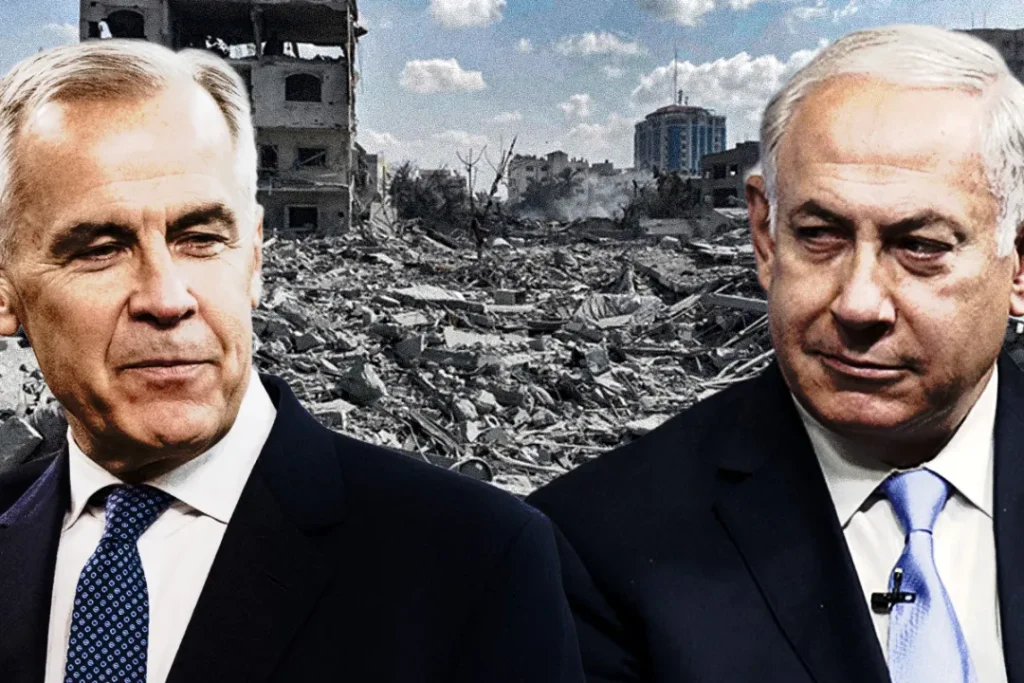 Pour rajouter l’insulte à l’injure, Carney impose toutes sortes de conditions à la souveraineté palestinienne. Il exige notamment que l’Autorité palestinienne organise des élections sans la participation du Hamas et que la Palestine se démilitarise.