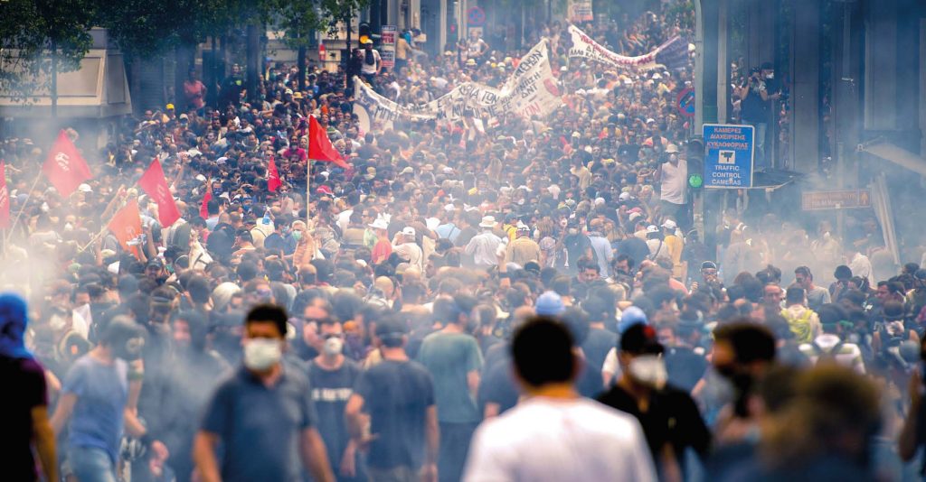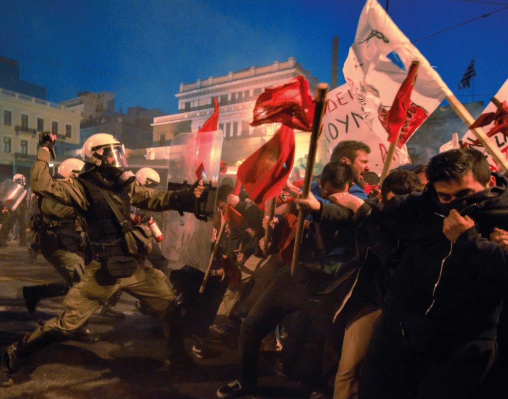 Les masses ont respiré des tonnes de gaz lacrymogène et ont fait pleuvoir un grand nombre de cocktails Molotov sur la police lors de véritables batailles rangées. Les combats de rue furent ponctués d’épisodes dramatiques, comme celui du suicide public d’un retraité, Dimitris Christoulas, en signe de protestation politique contre le régime et la misère. Dans une lettre pleine de force, il écrivit :