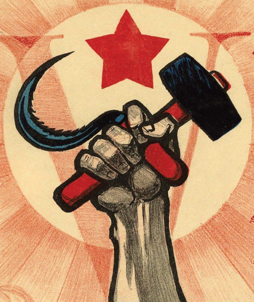 Affiche commémorant le cinquième anniversaire de la révolution d’Octobre et le quatrième congrès de l’Internationale Communiste.