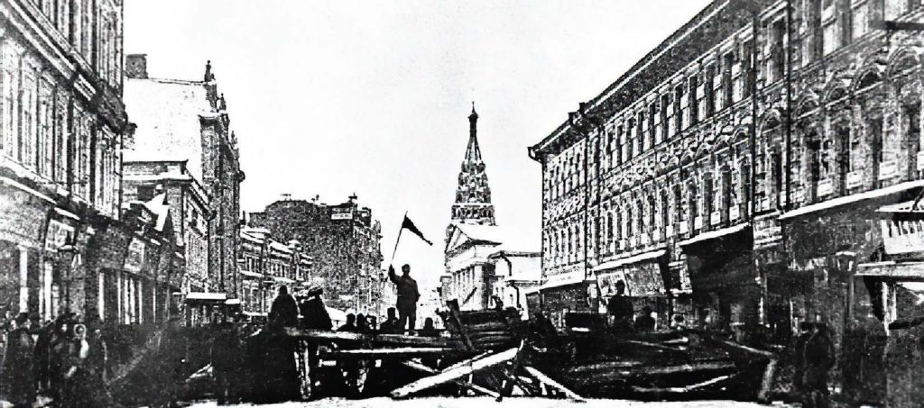 Barricades pendant le soulèvement de Moscou, 25 décembre 1905.
