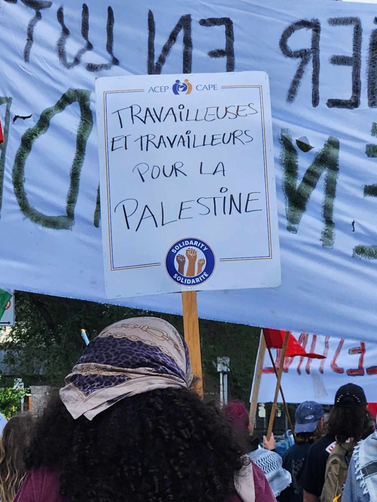 Le mouvement ouvrier, s’il est organisé, possède un immense pouvoir – il a le pouvoir de stopper la machine de guerre israélienne. Comme l’expliquait Manuel Viens, technicien mécanique syndiqué SCFP et militant du PCR : « C’est une force capable de freiner l’économie, de freiner le gouvernement, d’empêcher les munitions de quitter la province, d’empêcher les armes et le capital de quitter le pays. » Bien tristement, la plupart des syndicats qui soutenaient cette manifestation par le passé ont brillé par leur absence cette année, ce qui explique le plus petit nombre de participants. Cela est symptomatique du silence déplorable des chefs syndicaux face au massacre des Palestiniens. Plusieurs syndicats ont pris position contre le génocide, sur papier, mais les actions concrètes tardent à suivre. En n’endossant pas la manifestation de cette année, ils ont confirmé que « les bottines ne suivaient pas les babines », ce que Manuel a dénoncé.